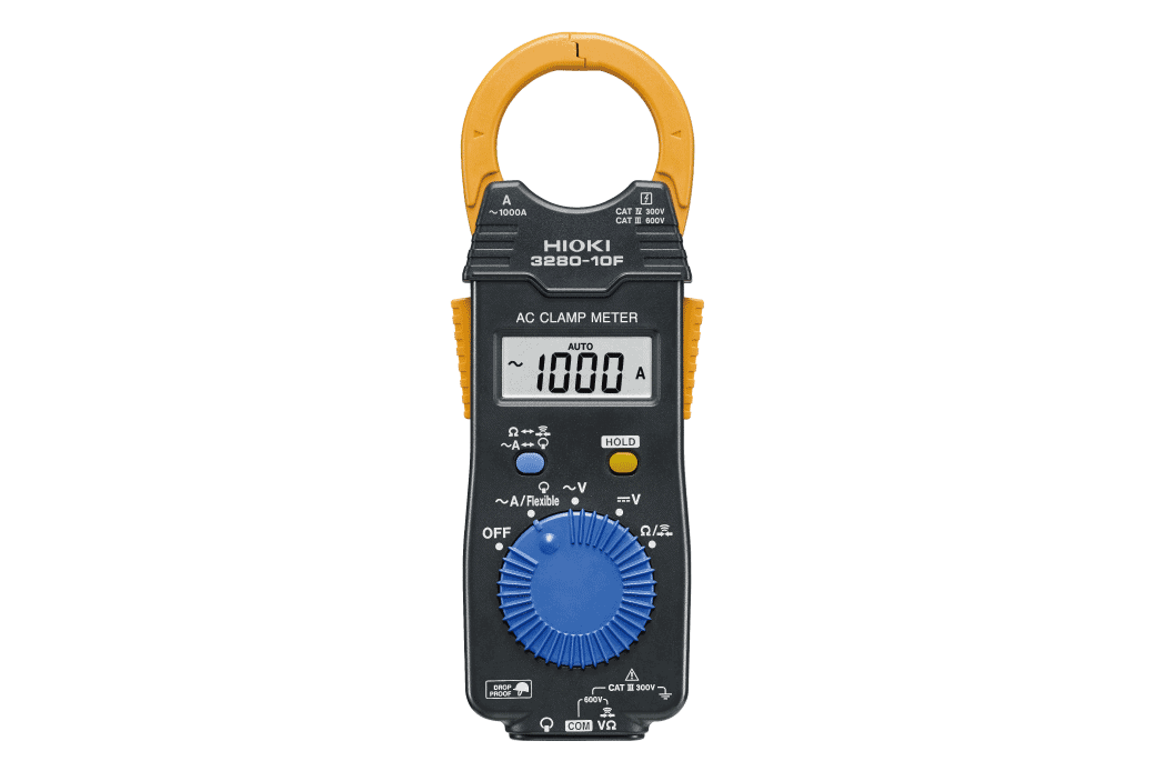 Hioki clamp meters are best-in-class measuring devices incorporating Hioki’ s expertise in current sensing technology. The 3280-10F is an average rectifying 1000A AC clamp meter that features a broad operating temperature range of -25°C to 65°C, thin and compact clamp core and optional flexible current sensor that you can attach to let you get into the tightest spots.